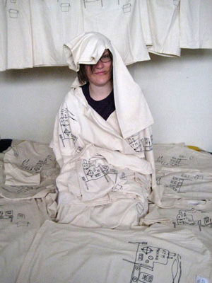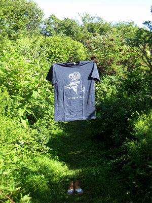 Emily Beliveau (of "The Diskettes") and myself hung out for six super intense days in 2010 in order to make new memories to replace the old ones. This collaborative shirt/paper print was part of that effort (and, in fact, the joke itself is an old one). Part 1 of a 49 part series.