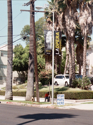 A very large, two colour screen printed map giving the locations of street vendors of maps giving the locations of homes owned by the stars in Beverly Hills, CA, USA. |